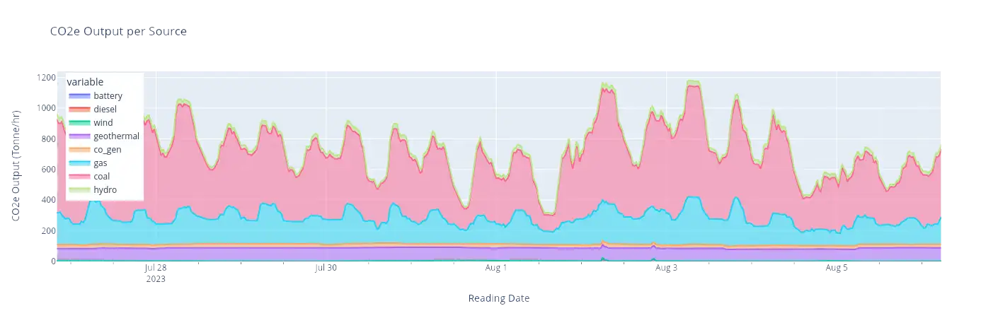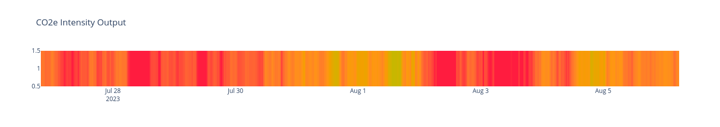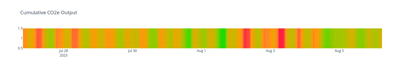 The amount of extra CO2e emitted by the grid if you turned on an appliance, in gCO2e/kwh. Heavily influenced by sources of power and the operational status of power-plants, meaning it has much longer cycles than the Cumulative Output.