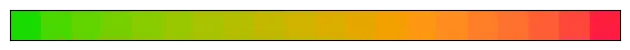 I made both options available for developers, but I went with the Cumulative CO2e Output by default because of its daily cycles, which is more informative for telling a user when during the day to charge their car, rather than screaming at them to not charge it for a week straight. For display on the micro-indicators, the last step is to translate the metric onto a green to red colour scale, which I developed in the Oklab perceptually uniform colour-space with a set luminosity across the entire scale.