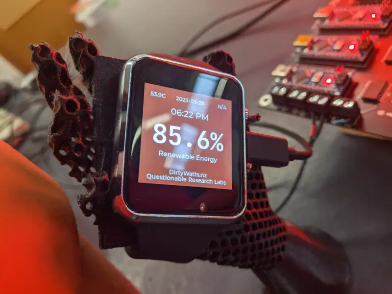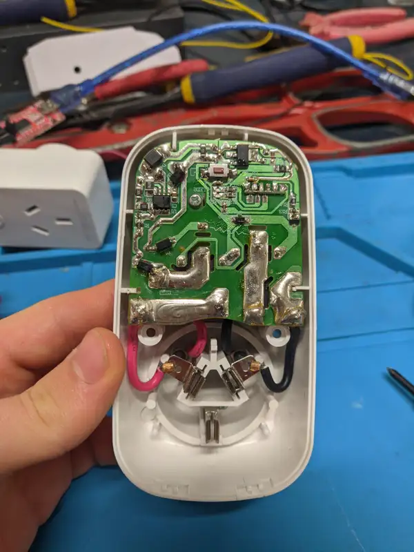 Did you know that, inside many standard smart-sockets, is the same family of chips that DirtyWatts was designed for? This smart plug is from Bunnings, which I took the cover off, soldered to the debug pins, and flashed with DirtyWatts firmware! It’ll automatically turn the power on-and-off when the CO2e Emissions exceeds its threshold.