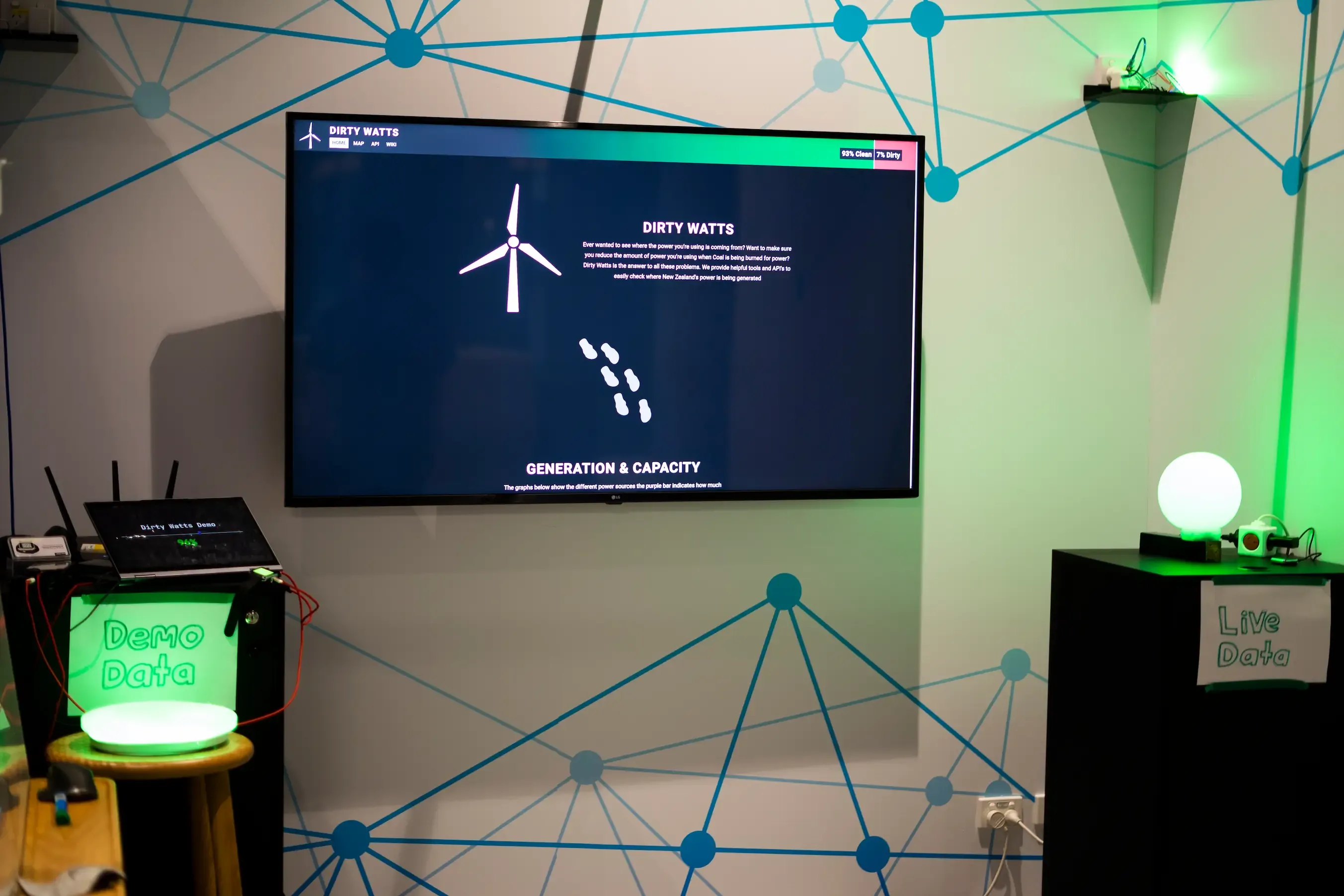 The New Zealand power grid is in constant flux, the power demand skyrockets in the afternoon and plummets at night. To supply the power spikes, the grid is forced into mixing its coal and gas backups into its renewable power. A DirtyWatts Micro-Indicator is a small physical device that takes live data from the power grid, and reports back if the grid power is “Clean” or “Dirty”. Most devices show how clean the grid is through an Indicator light, but some display the current renewable energy mix or simply activate when depending on the grid conditions.
