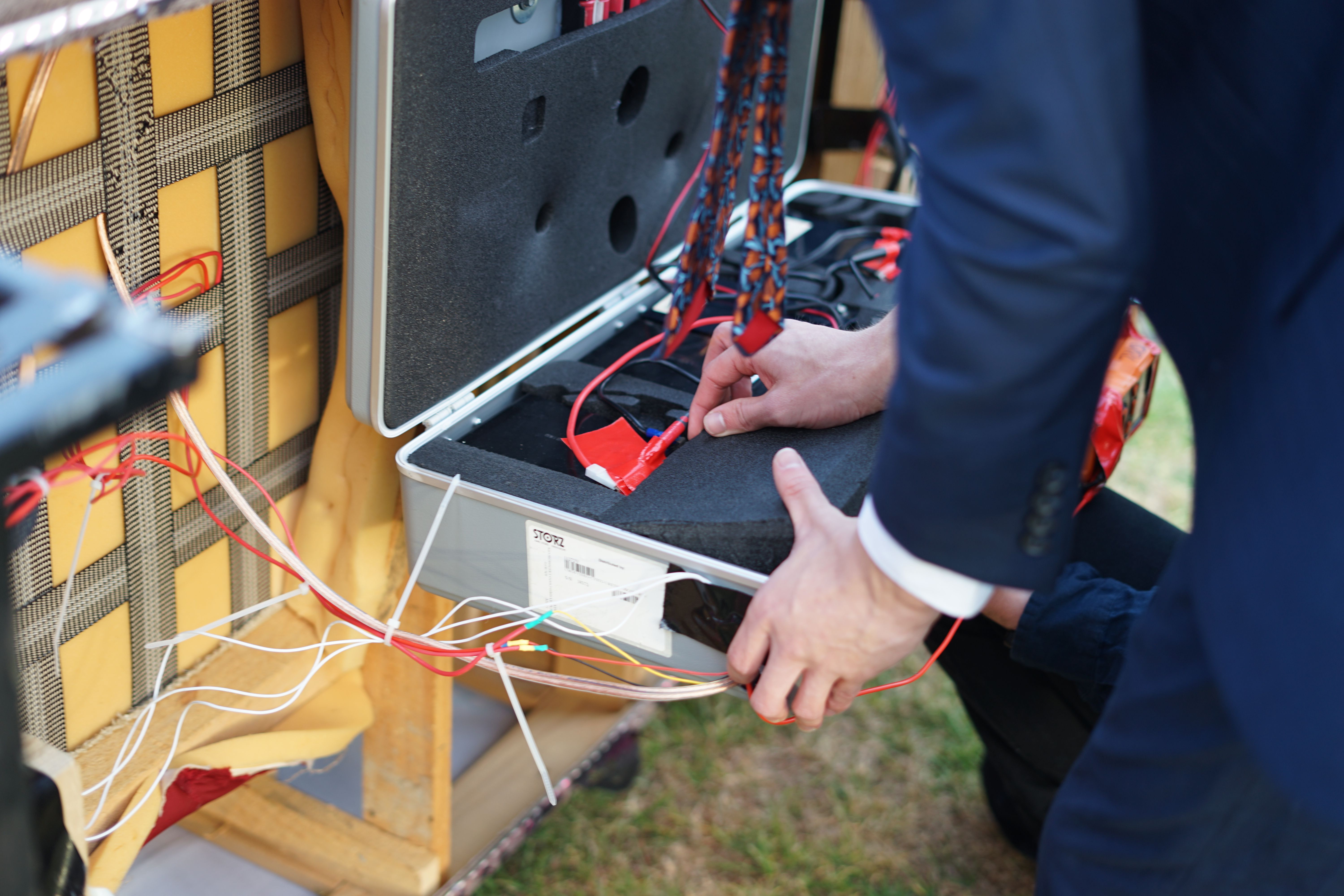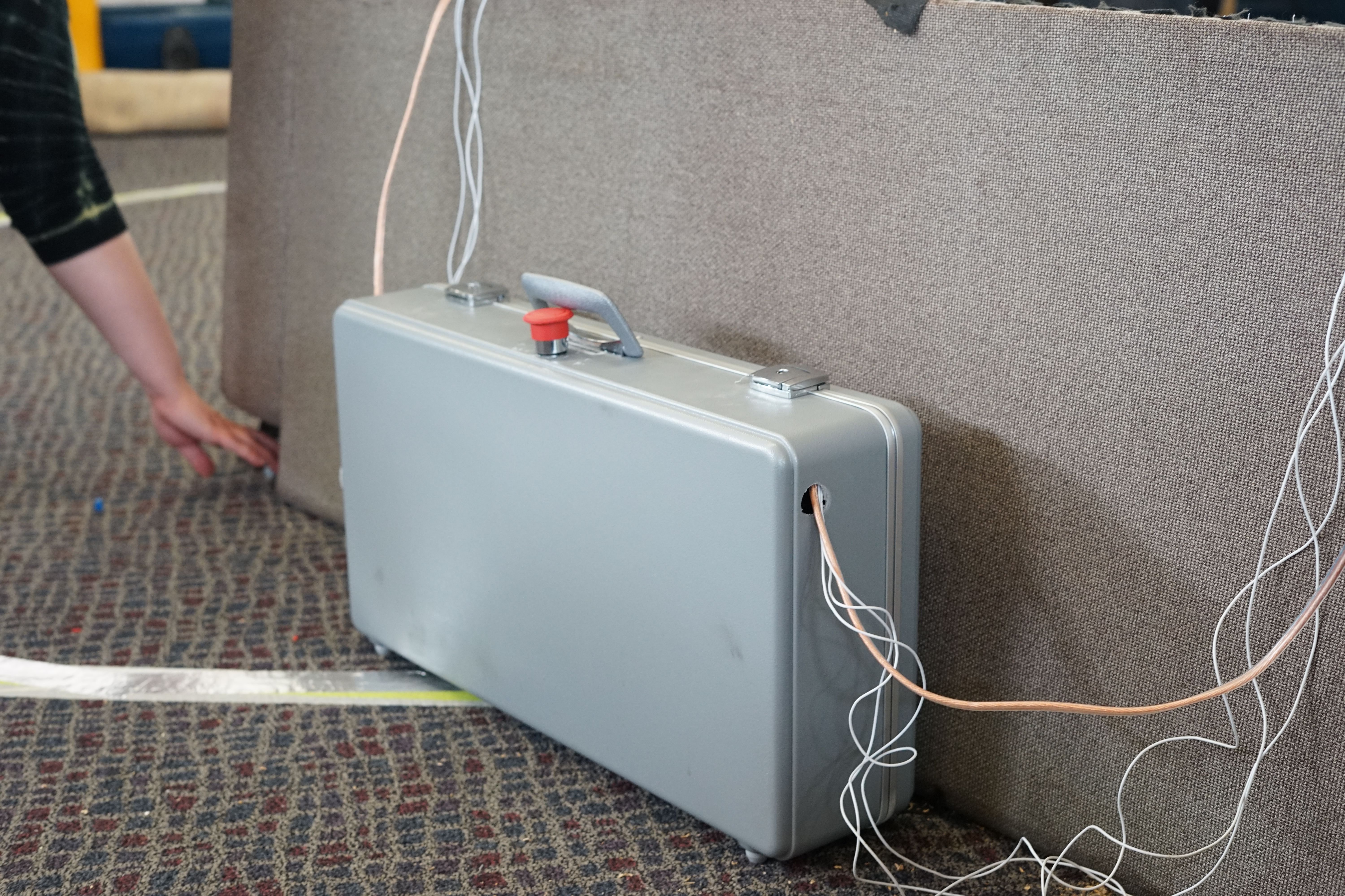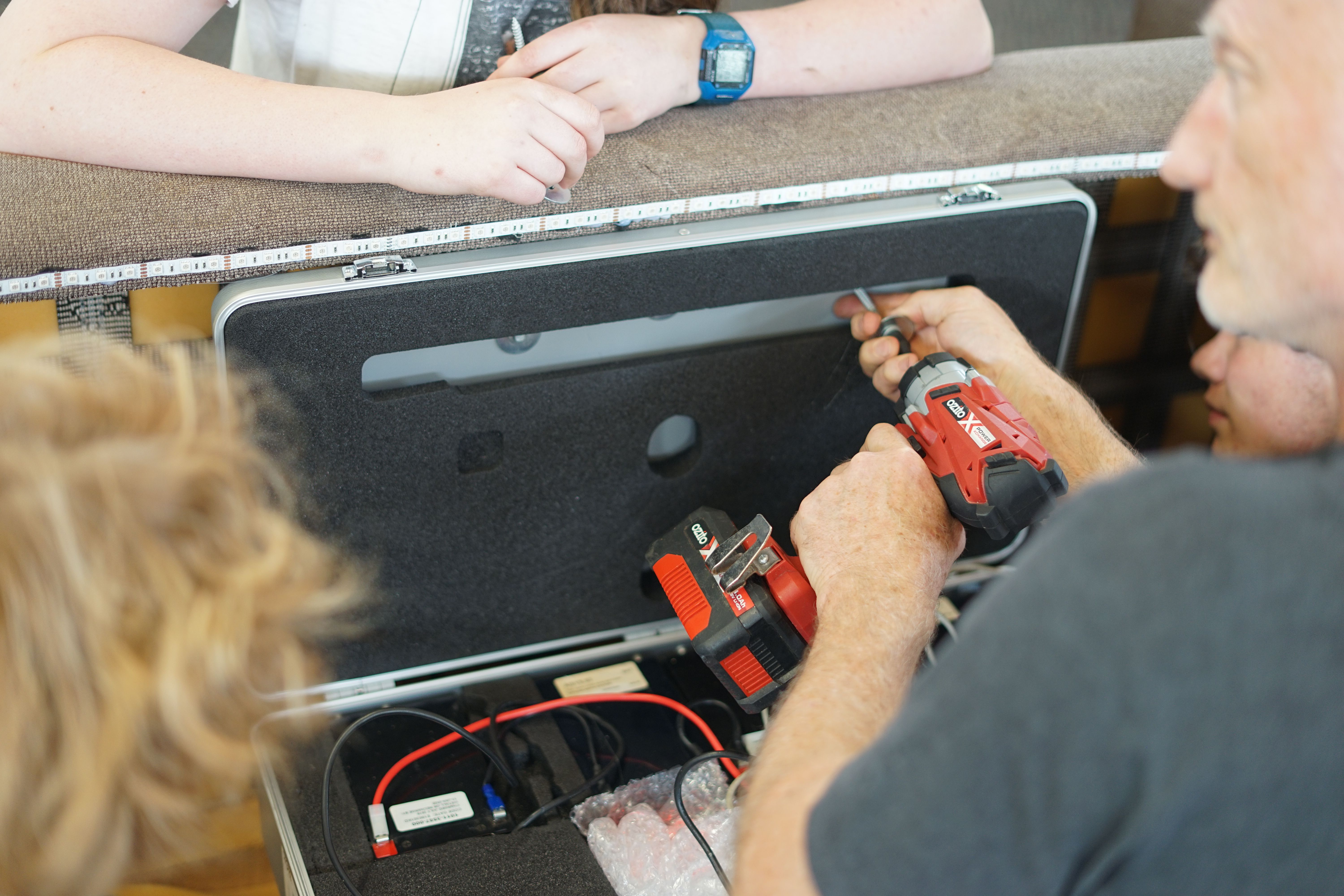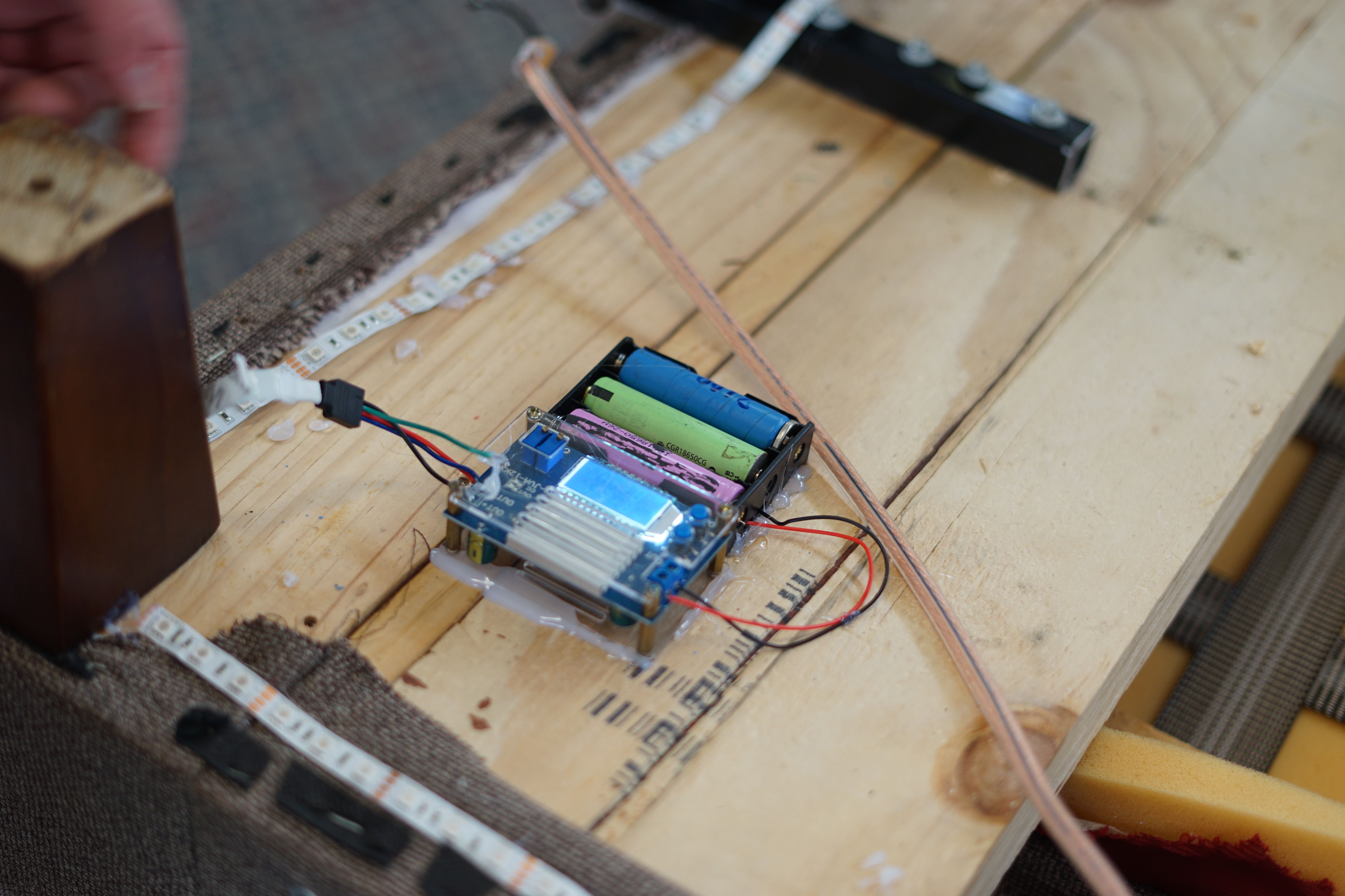 All of those electronics were stuck into a briefcase bolted to the underside of the couch for easy maintenance. Underglow, and speed animations around each motor was added for the all important flair.