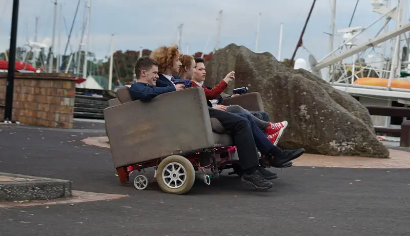 Now, a high-speed couch isn’t enough of a terrible idea itself, we needed to go deeper. Introducing, a collaborative driving experience. You now only get to control one side of the vehicle, the other side is now controlled by your enemy. You must agree on exactly were to go, and be perfectly in-tune with each other in order to get anywhere.